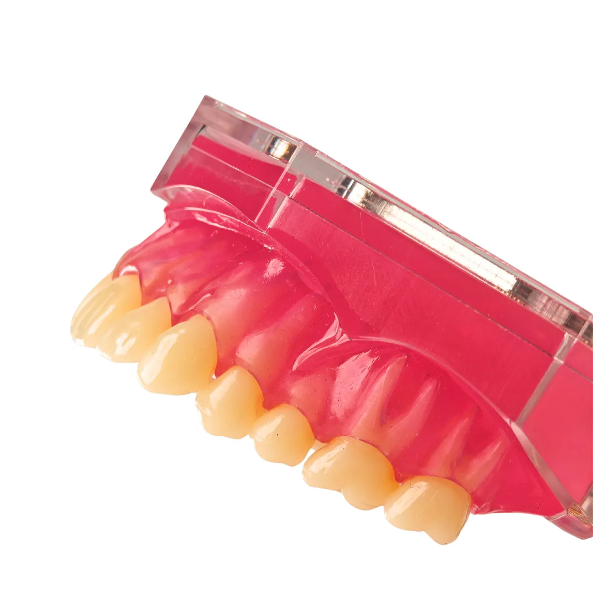A. Yes. The teeth are push type and removable, allowing dentists to demonstrate individual teeth and root structures.