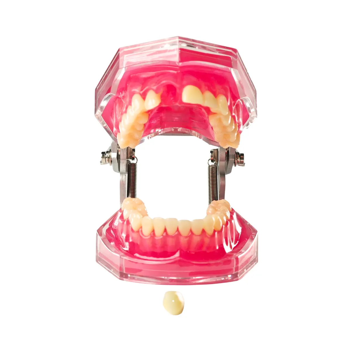 A chairside dental typodont with soft gingiva and removable teeth designed to help dentists clearly explain extractions, root anatomy, and treatment plans to patients.